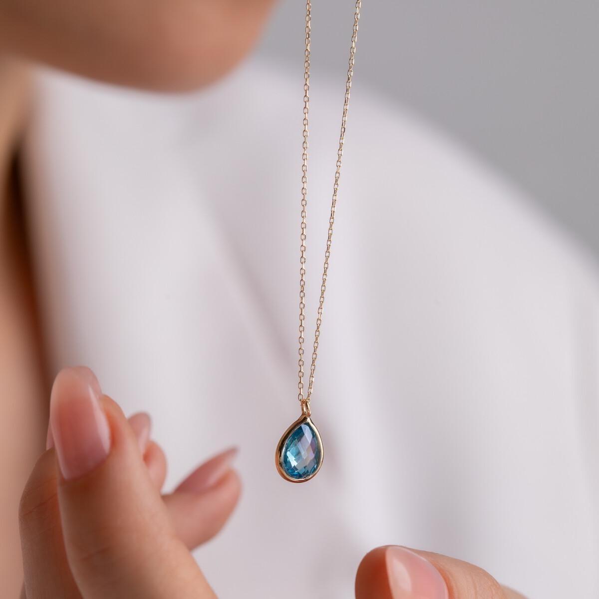 • Gemstone: Adorned with a dazzling Aquamarine Cubic Zirconia, adding a touch of brilliance and elegance to the necklace.