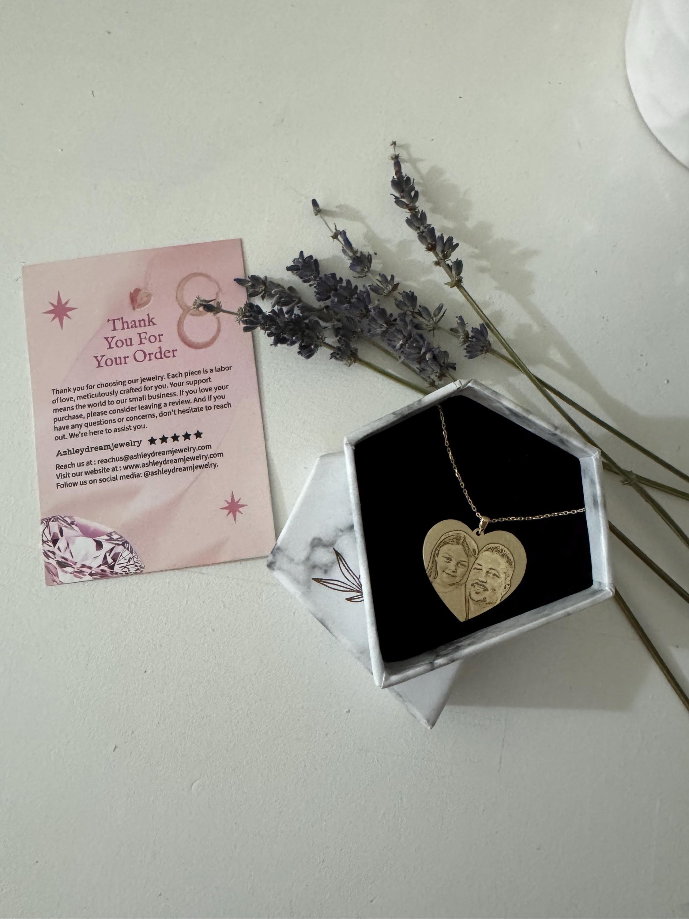 ♥ Our necklaces are custom-made with ANY photo of your choice! Simply provide us with one or two clear photos, and we'll skillfully engrave them onto the pendant made of 14K solid gold.