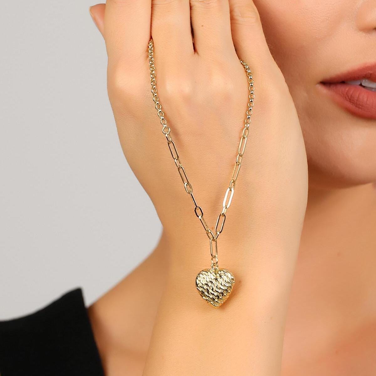Add a touch of elegance to your jewelry collection with this exquisite 14K gold necklace. Featuring a delicate chain adorned with multi-shaped charms, including cubic zirconia (CZ) accents and a central ruby-like charm, this necklace is designed to catch the light and enhance your look effortlessly.