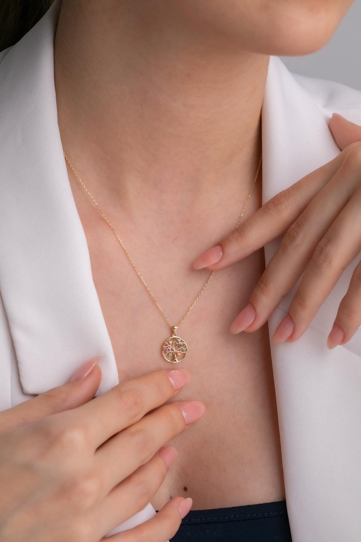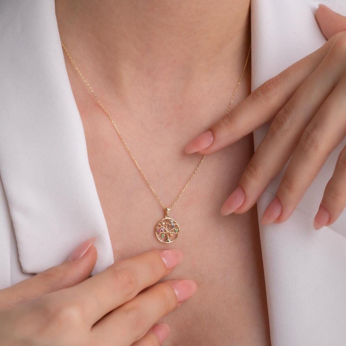 The 14K Real Gold Family Tree Necklace, featuring a multicolor circle tree of life pendant, is a stunning expression of family love and connection. With its minimalist design and personalized birthstones, it's the perfect Mother's Day gift to celebrate the bond between family members. This necklace is sure to be cherished for years to come, symbolizing the strength and beauty of your family tree.