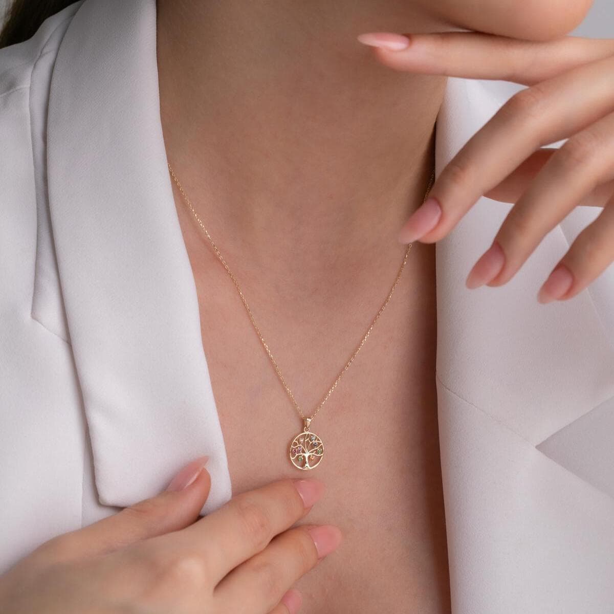 14K Gold Family Tree Necklace- Gemstone Tree of Life Pendant - Family Birthstone Necklace- Family Jewelry Gift For Christmas Gift