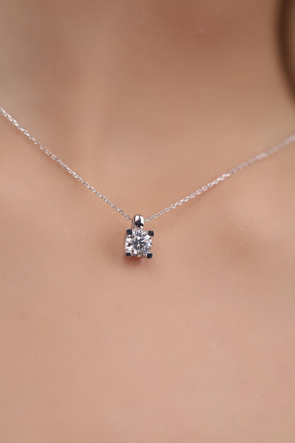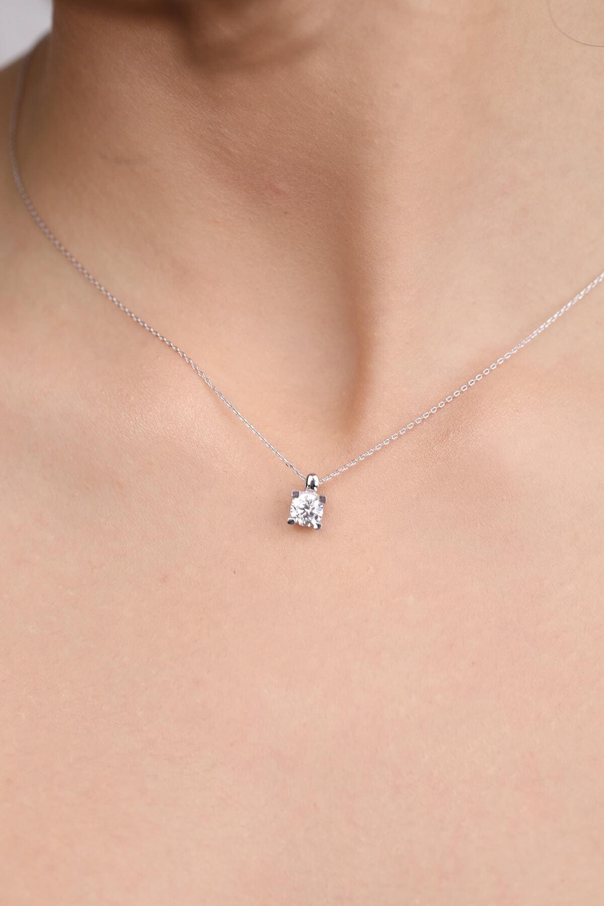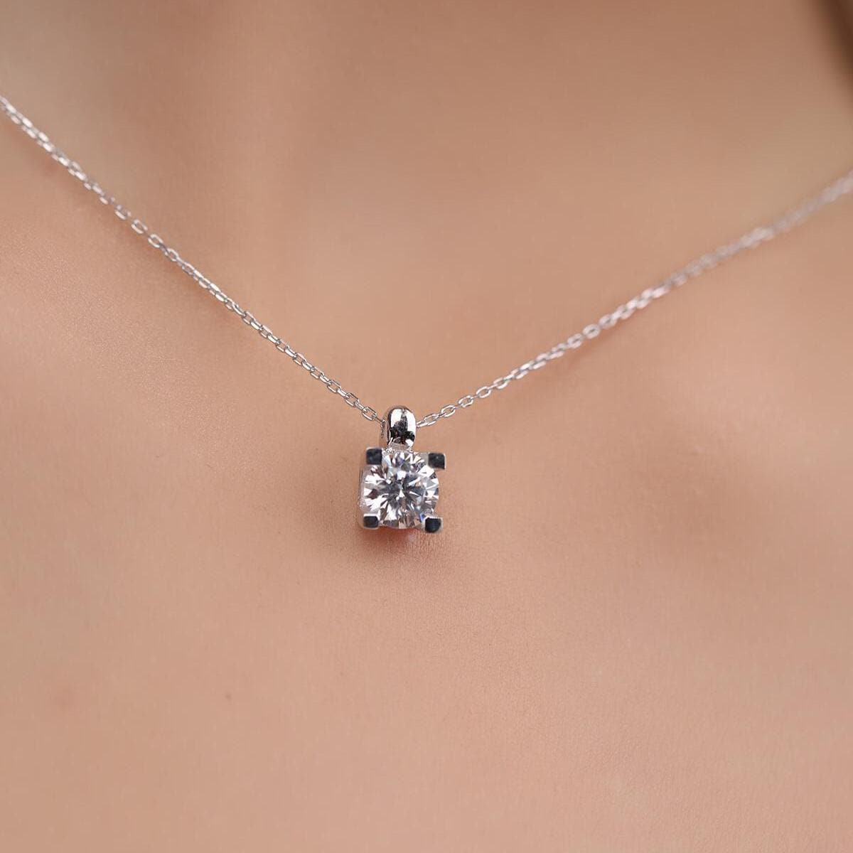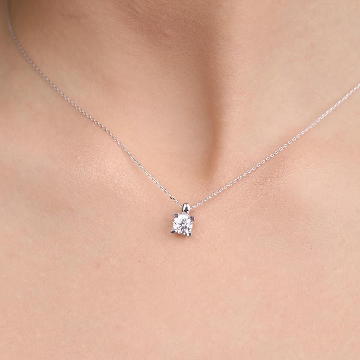 14K Gold Solitaire Lab Grown Diamond Pendant – a timeless and elegant piece designed for everyday wear. This minimalist dainty necklace features a sparkling 1/2 ctw round lab-grown diamond securely set in a classic four-prong setting. Perfect for layering or wearing alone.