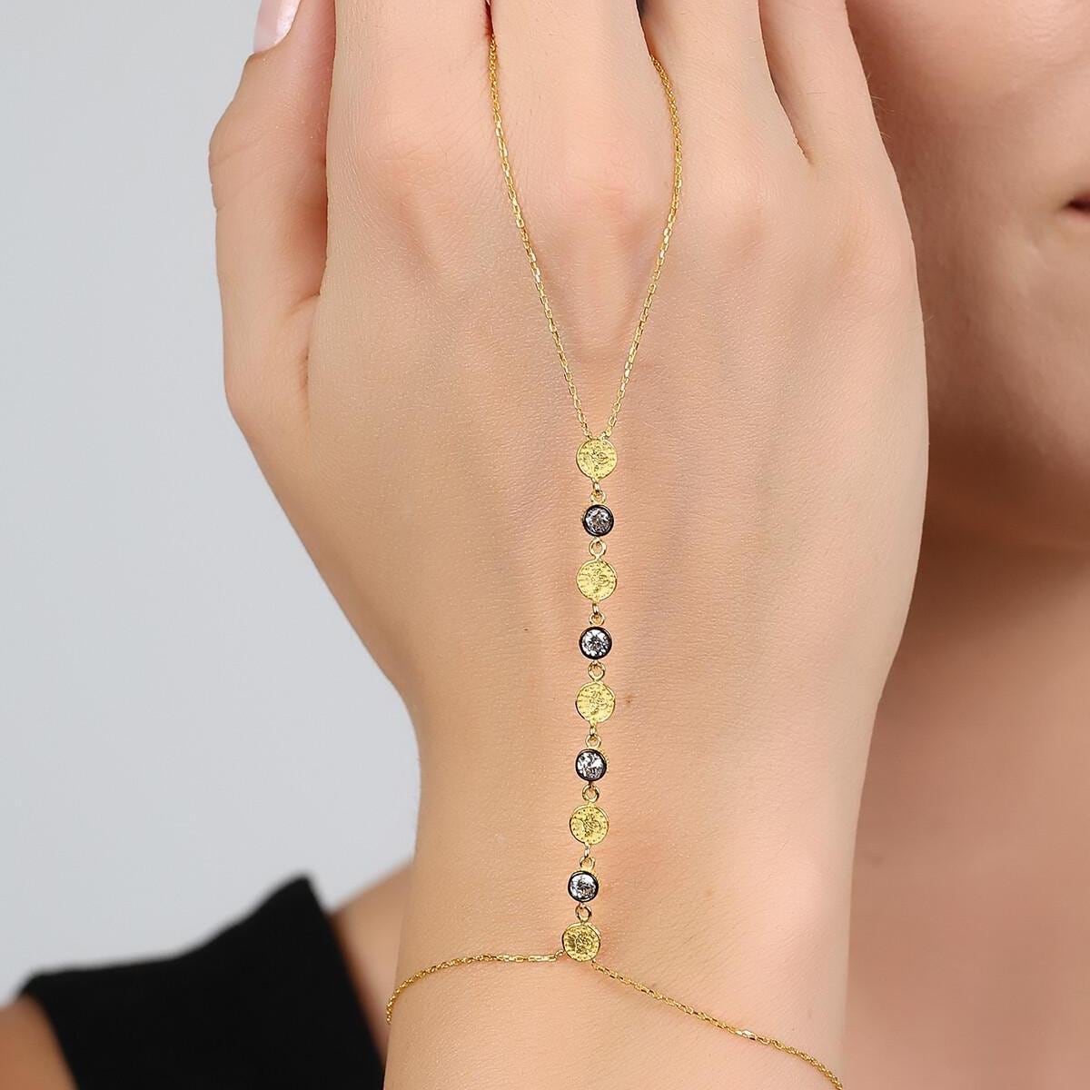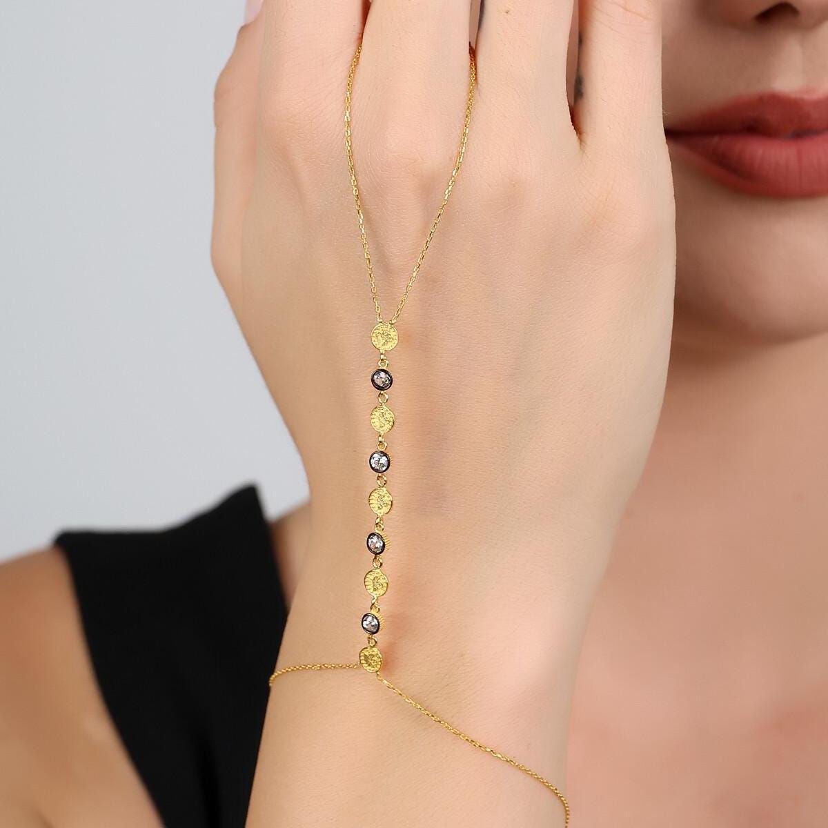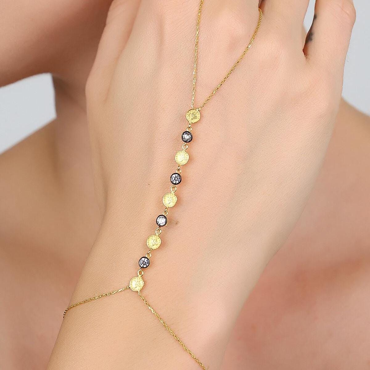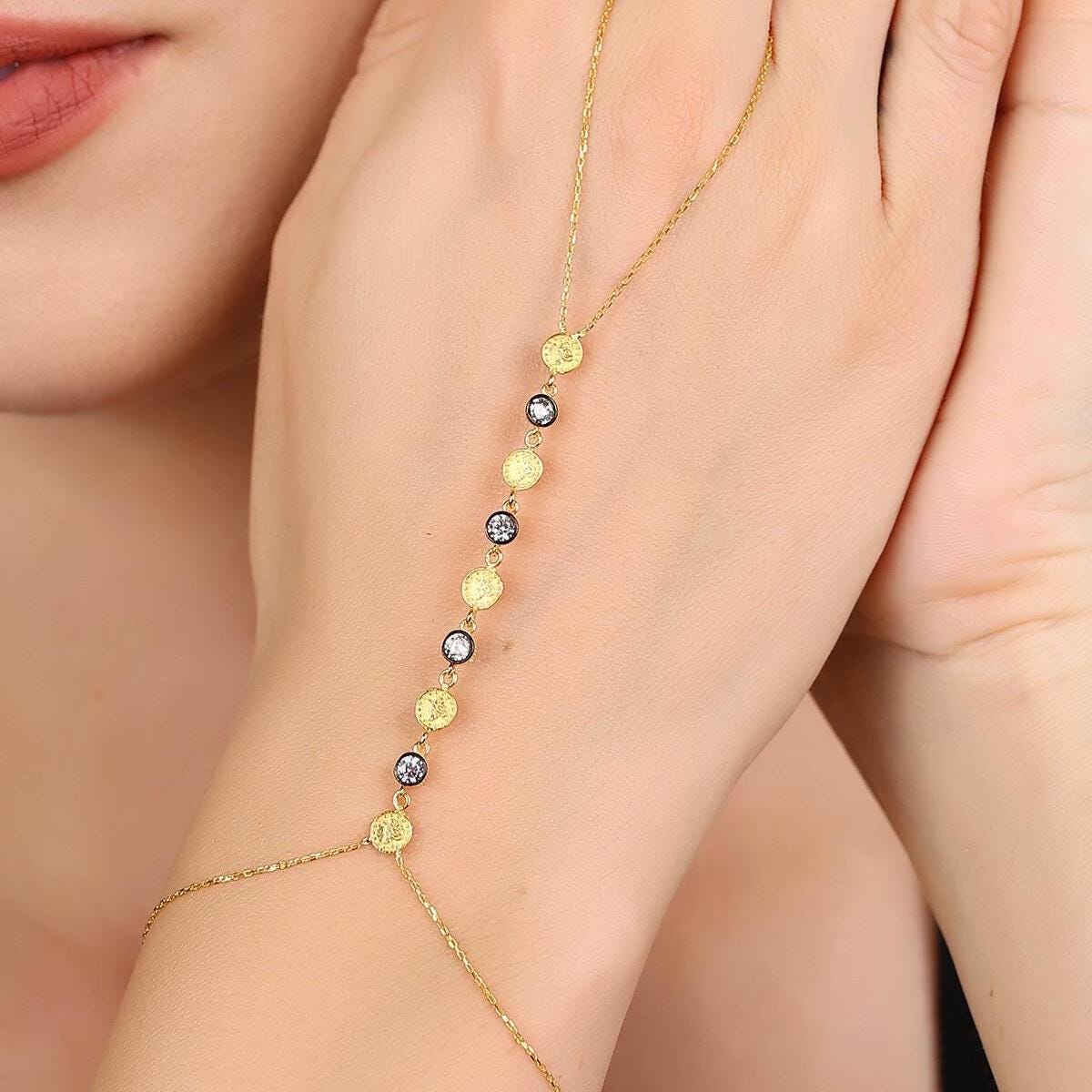 Add a touch of heritage and elegance to your look with this 14K Gold Ottoman Tughra Hand Chain Bracelet. Designed with a delicate finger link chain, sparkling CZ gemstones, and intricate Tughra-inspired motifs, this piece beautifully blends tradition with modern minimalism. Perfect for everyday wear or special occasions.