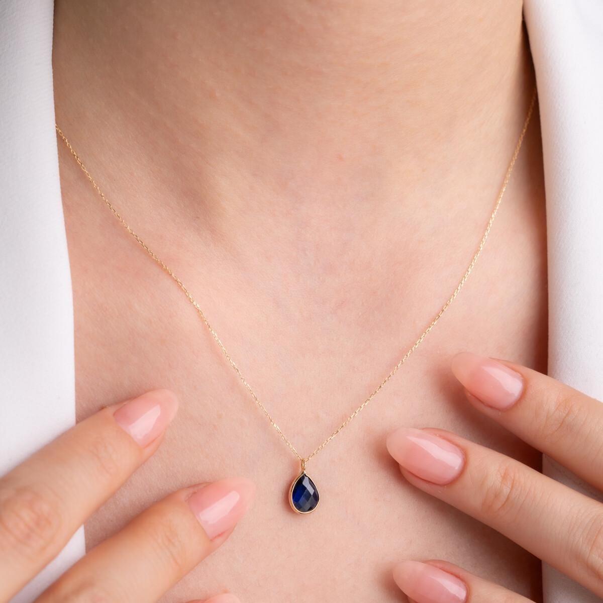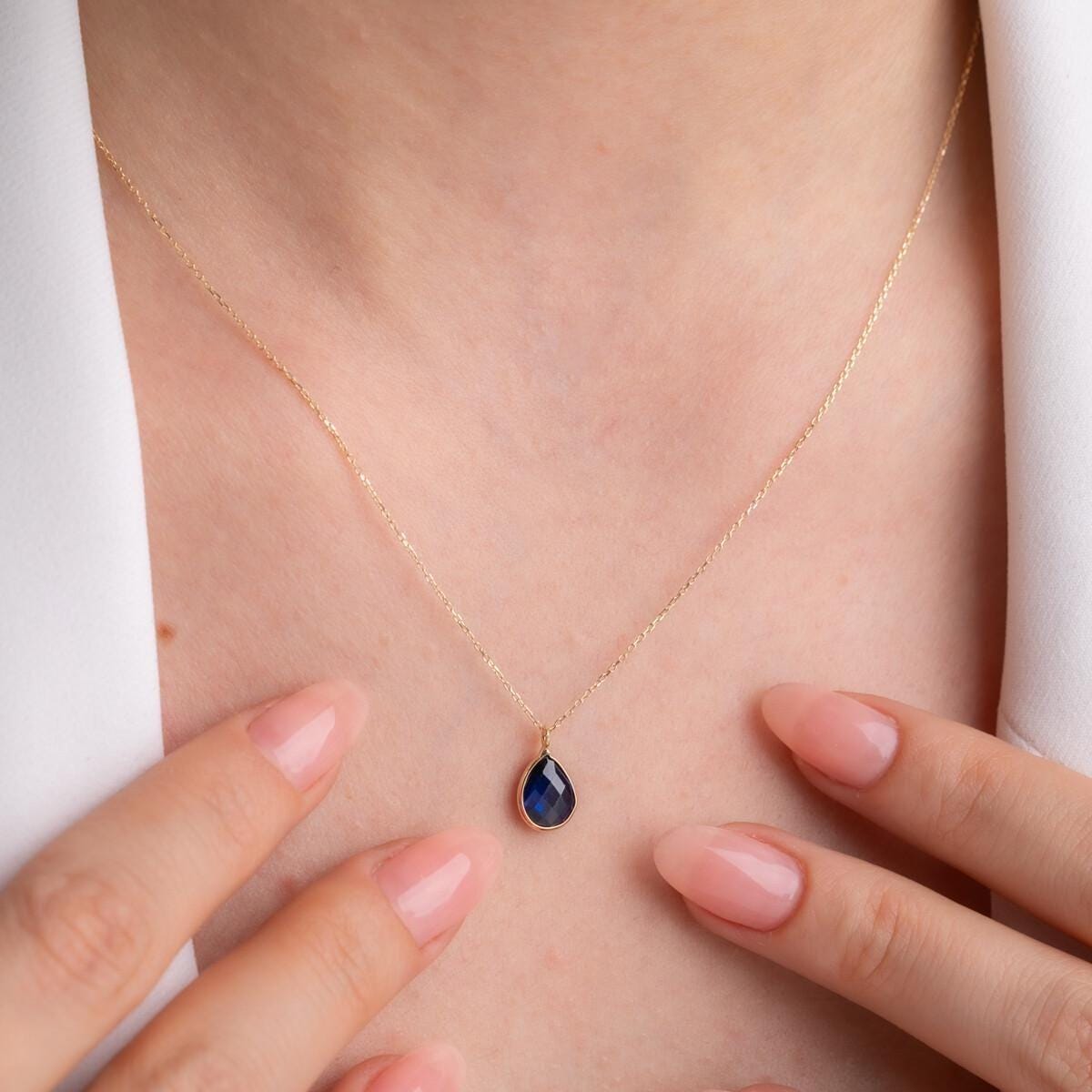 The 14K Gold Blue Sapphire Pear Shaped Necklace is a breathtaking piece, featuring a beautifully faceted blue stone. Its elegant design makes it an ideal birthday gift, a thoughtful gift for a bride, or a memorable anniversary gift. This necklace captures the serene beauty of aquamarine, ensuring that any recipient feels special and cherished. A timeless piece that adds a touch of sophistication to any jewelry collection.