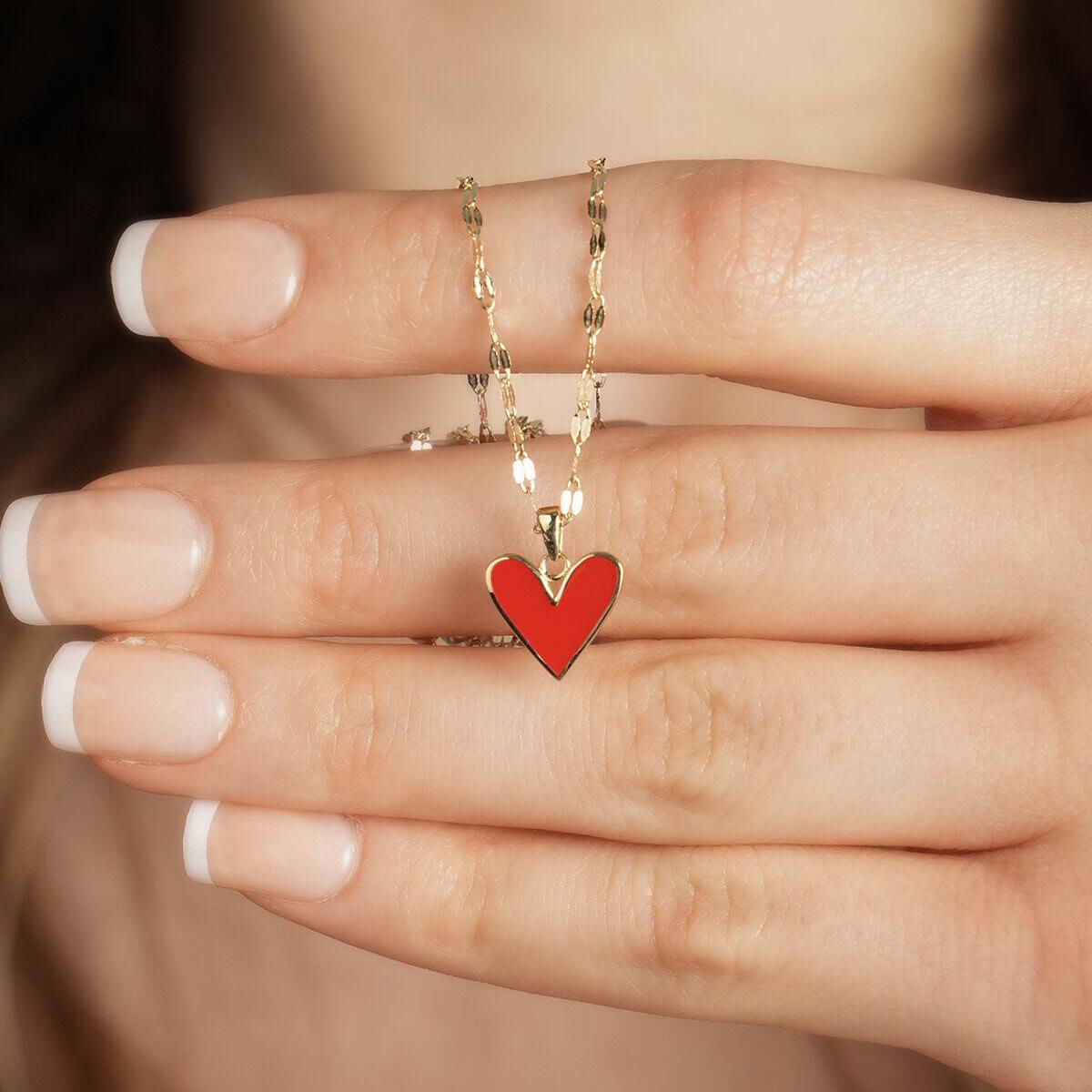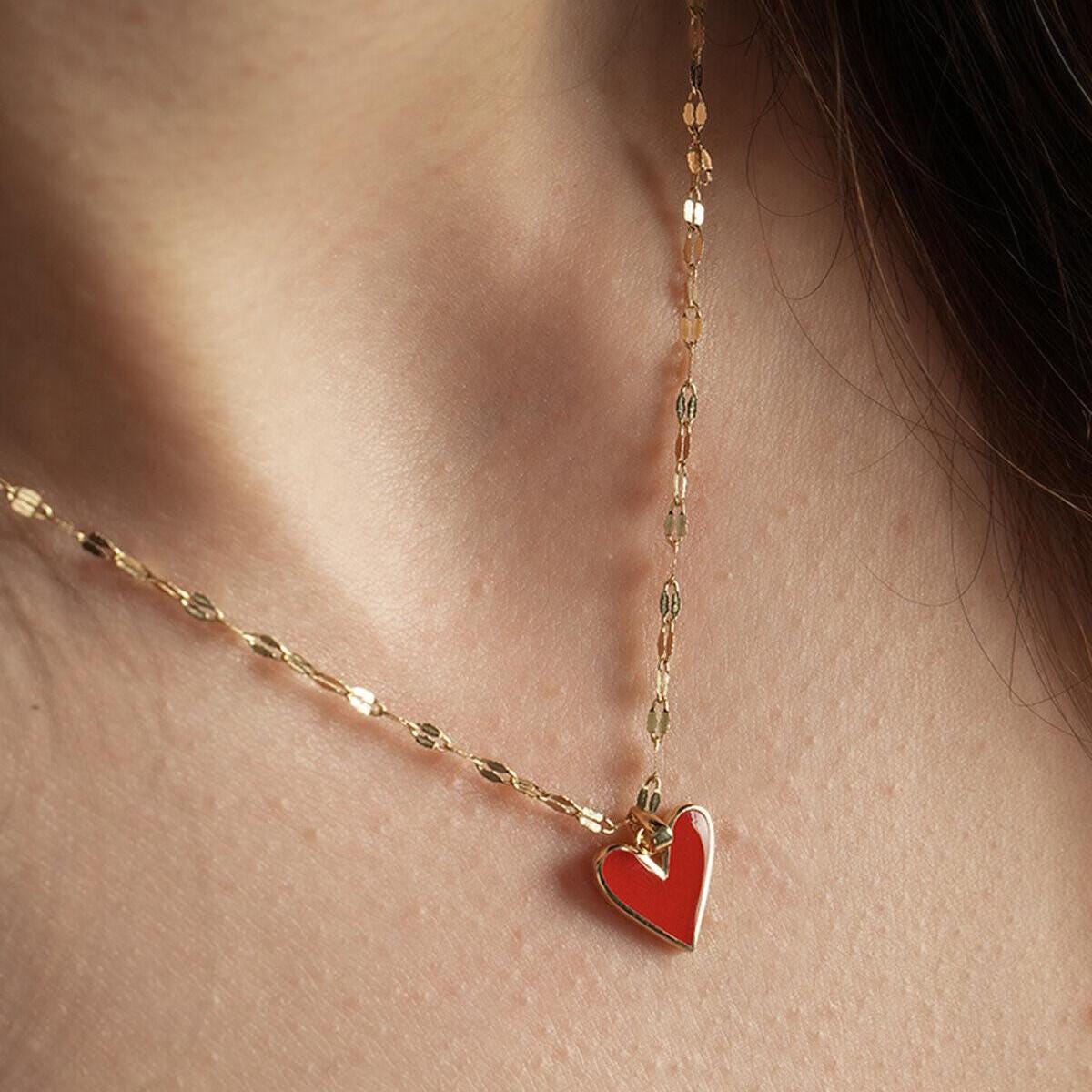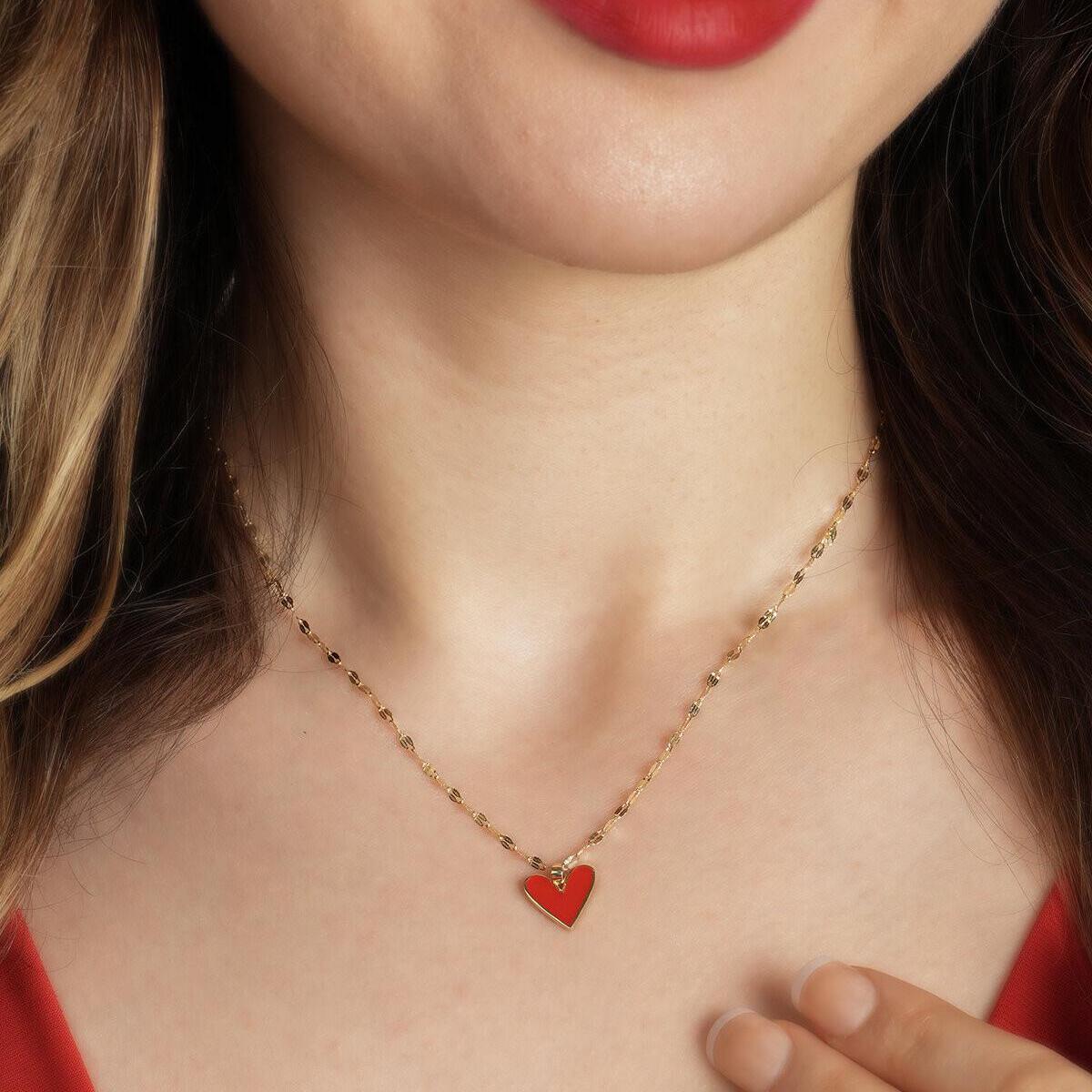 Add a touch of love and sparkle to your everyday style with this delicate Gold Red Heart Necklace. Featuring a vibrant enamel heart pendant and a sparkle diamond-cut chain, this dainty piece is perfect for layering or wearing alone.