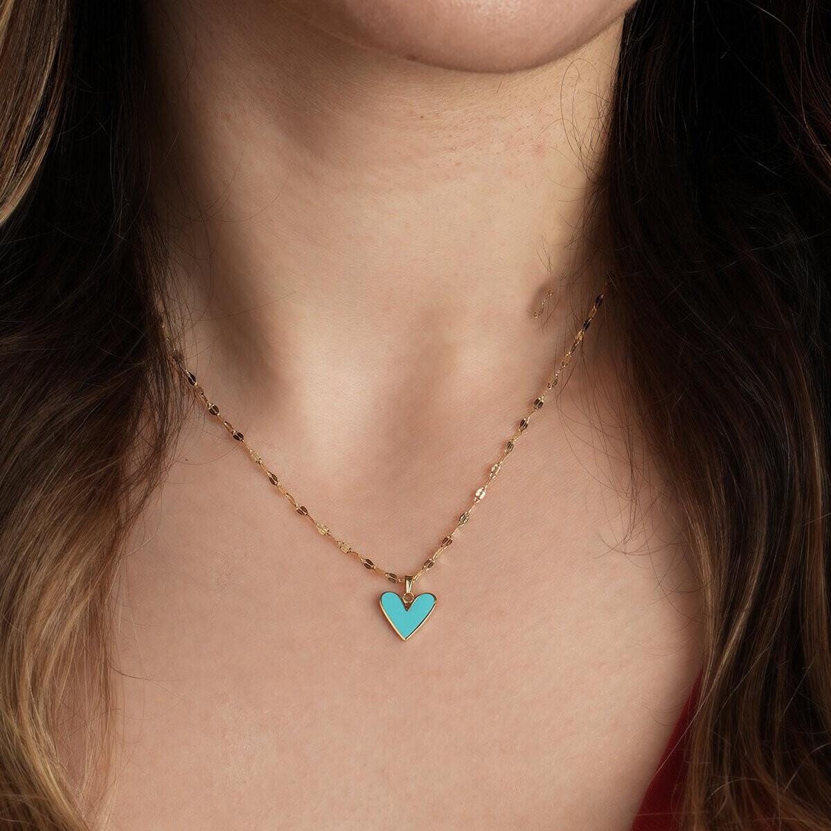 14K Gold Turquoise Heart Necklace with Sparkle Diamond-Cut Chain