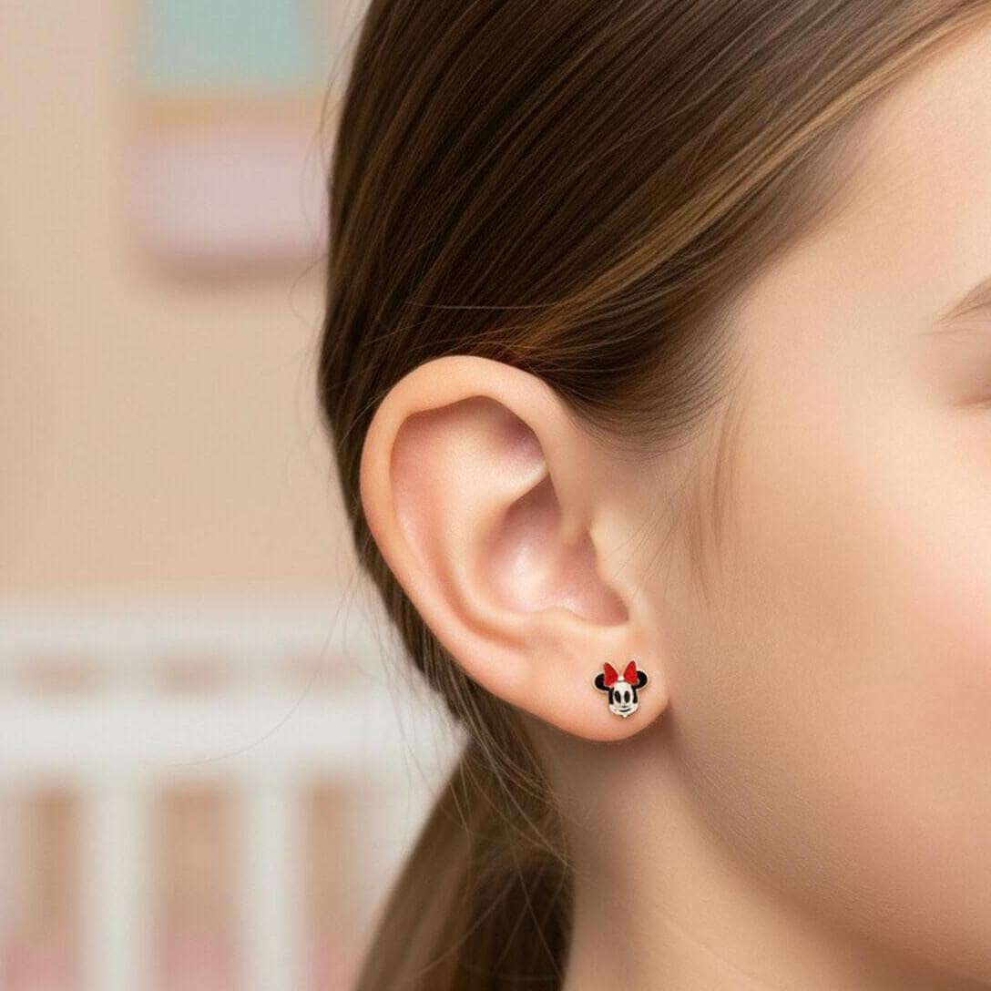 Delight your little one with these adorable Mickey Mouse silhouette stud earrings, beautifully crafted in 14K yellow gold and finished with high-quality colored enamel for a playful, eye-catching look. These earrings are designed especially for kids who love fun, whimsical style while still enjoying fine jewelry craftsmanship.