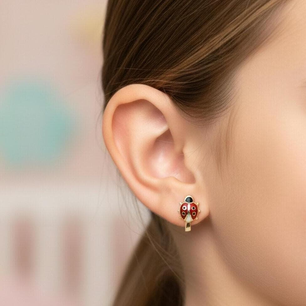 Add a sweet and playful touch to your little one’s jewelry collection with these adorable 14K Solid Gold Ladybug Hoop Earrings. Designed with bright red and black enamel details, these charming ladybug earrings symbolize luck, happiness, and protection — making them a meaningful and beautiful gift.