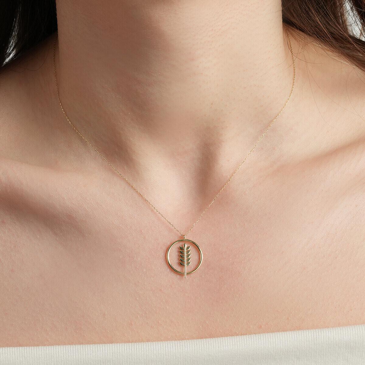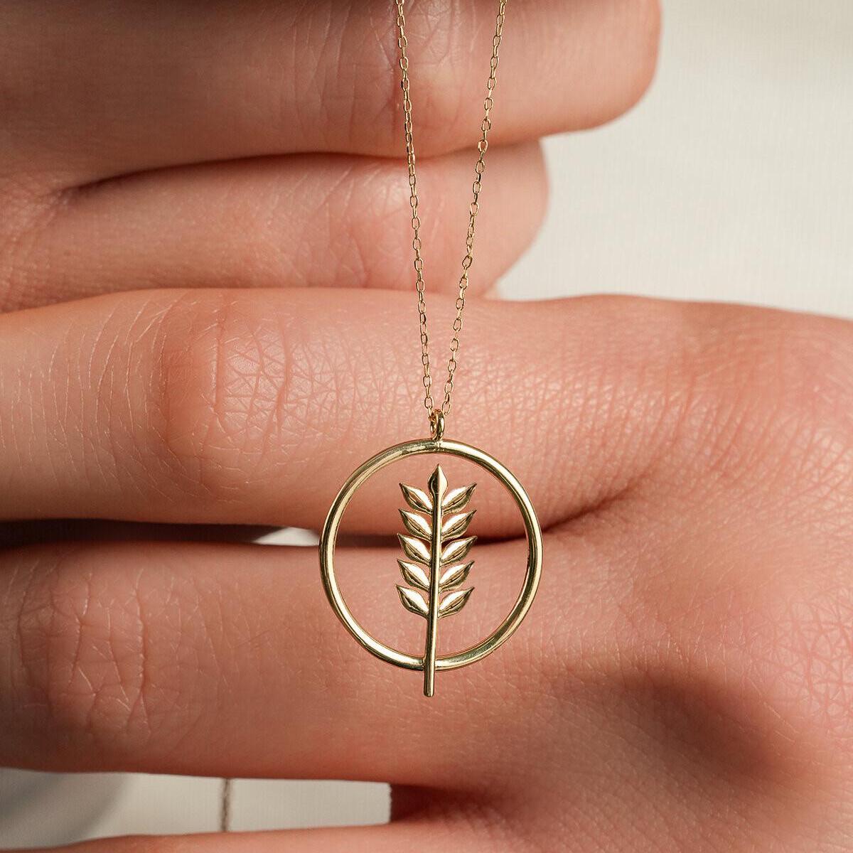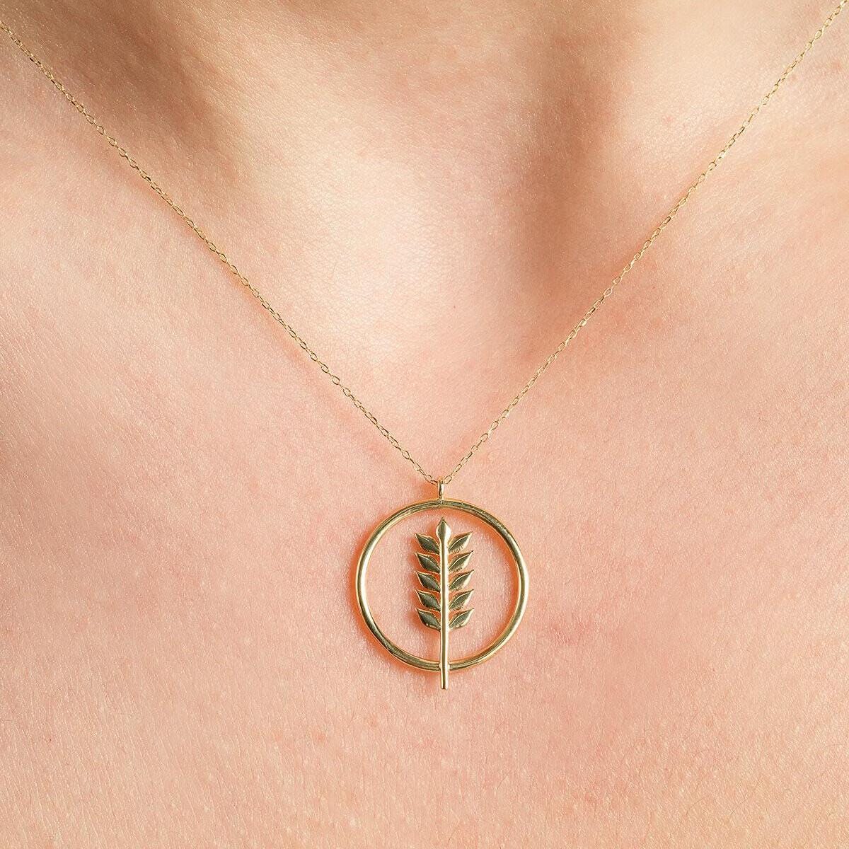 Celebrate nature, growth, and abundance with this elegant 14K Solid Gold Wheat Leaf Pendant Necklace. Designed with a delicate wheat branch framed inside a modern circle, this piece symbolizes prosperity, harmony, and new beginnings.
